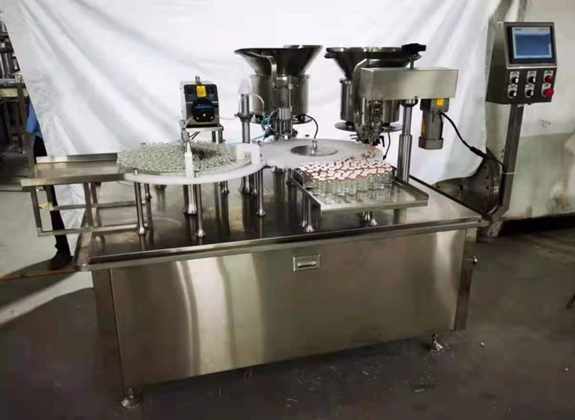 本機供藥廠灌裝、壓塞或軋蓋、旋蓋工序,全機可完成理瓶、輸瓶、定量灌裝、壓塞、軋蓋等工序,凡與藥物接觸的零件均采用不銹鋼或聚四氟乙烯制造。通常可單獨使用亦可銜接相關機械,達到一貫作業的生產線。適用于一般化工、制藥、食品、化妝品、清潔用品等的自動灌裝、扣塞、軋蓋等作業使用。